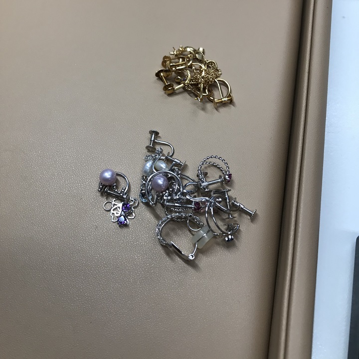つい先日、リピーターのお客様より、K18製やホワイトゴールド(WG)のイヤリング・ピアス・ネックレスをお買取りしました。刻印が古いお品や、変形が見られるアクセサリーも含まれていましたが、